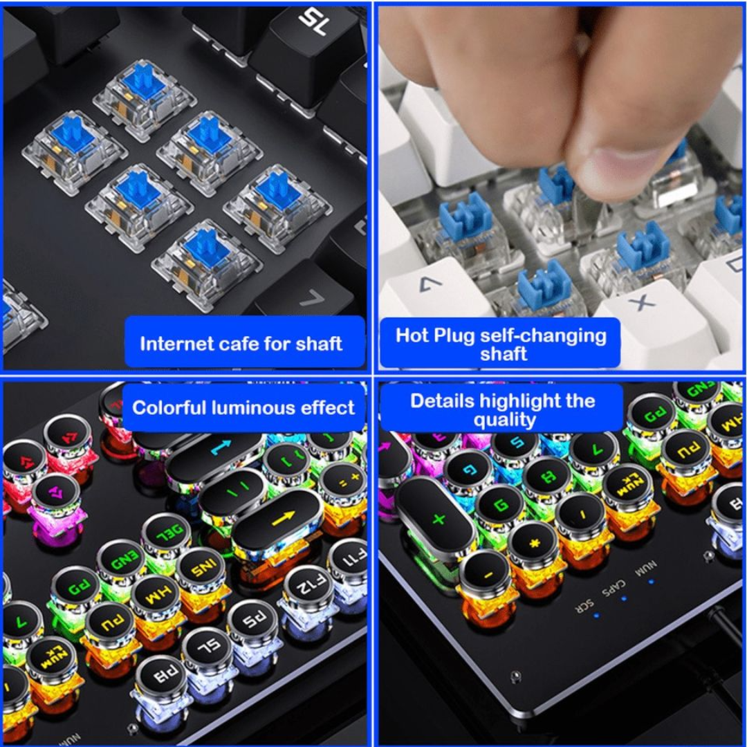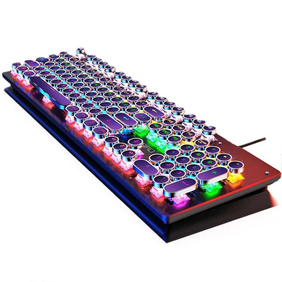 HIGH-END PC GAMING KEYBOARD FAREWELL TO CARD KEYS, HIGH-DENSITY METAL PANELS, AND NARROW EDGE DESIGN OF OF METALWIREDRAWING PANEL, RGB BACKLIGHT, DUST PROOF, AND WATERPROOF, RGB LED Backlit Wired Keyboard with Blue Switch Retro Punk Round Keycap 104 Keys Cute Keyboard